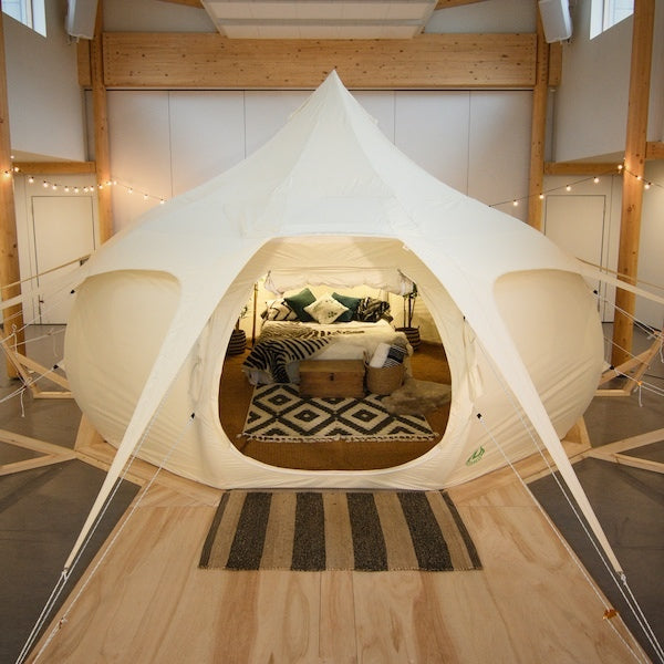 The Air Belle model is an inflatable version of our Lotus Belle pole tents (4m / 5m / 6m).