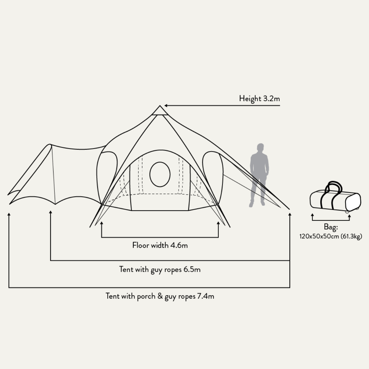 The Air Belle is a revolutionary tent, and one of our favourites! It is important to note that this tent weighs a hefty 62kg, so do be aware when planning any trips with it. Please do get in touch if you want to ask us any questions about it!